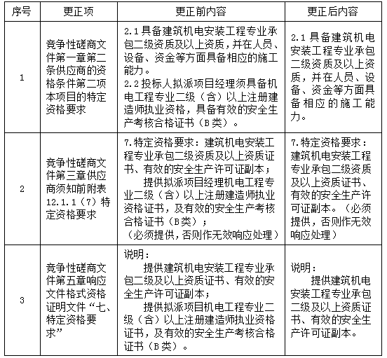 更正事項:競爭性磋商文件
