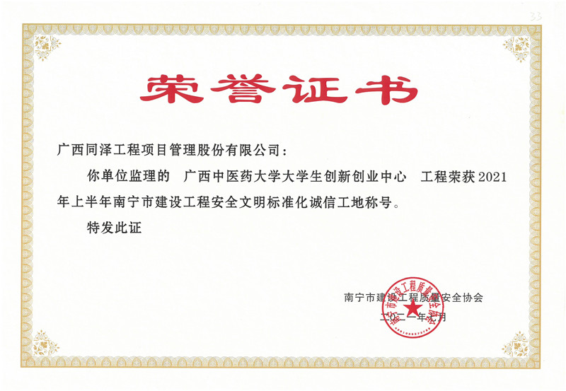 廣西中醫(yī)藥大學(xué)實(shí)訓(xùn)樓項(xiàng)目、大學(xué)生創(chuàng)新創(chuàng)業(yè)中心項(xiàng)目榮獲2021年度安全文明標(biāo)準(zhǔn)化工地