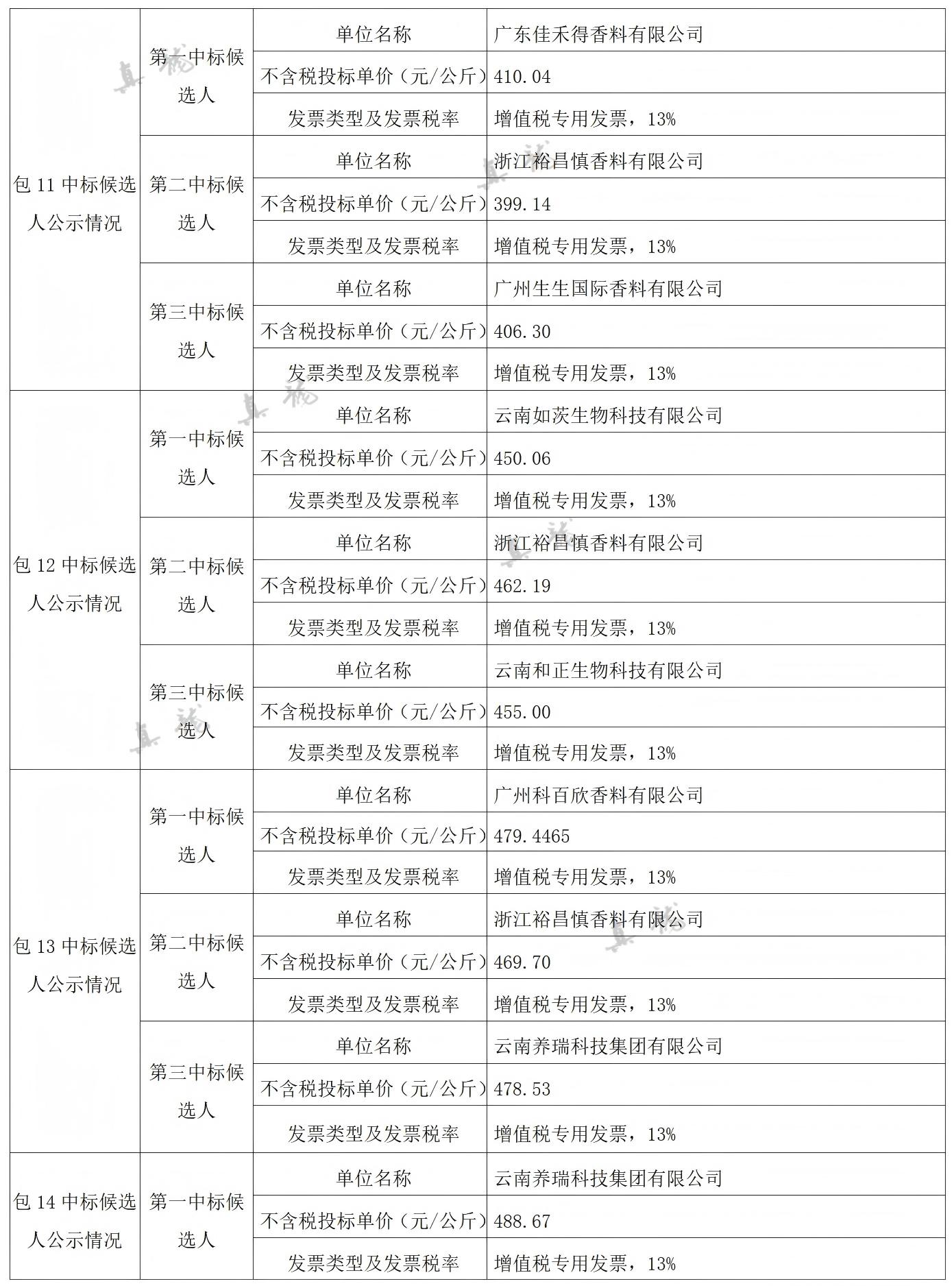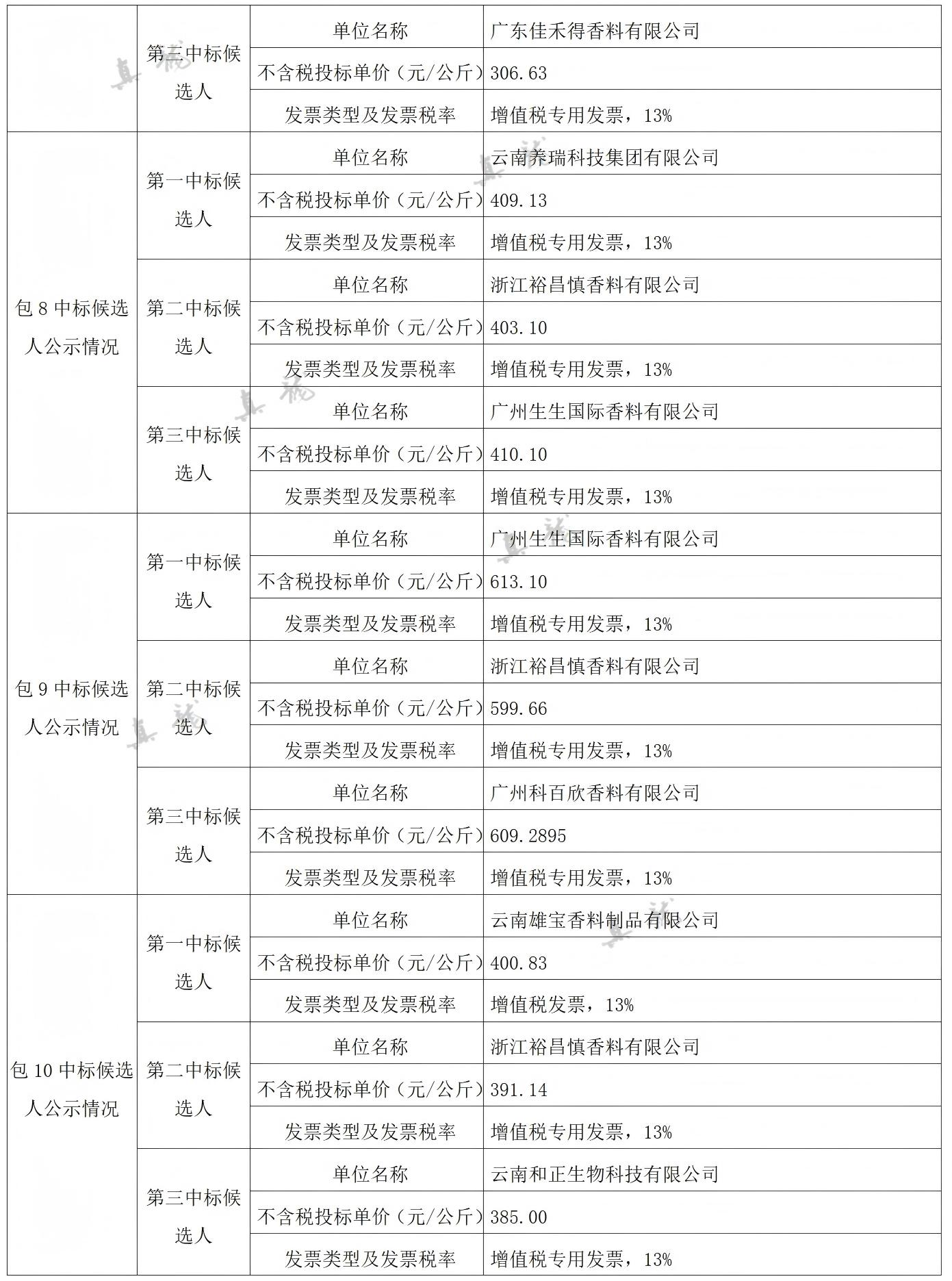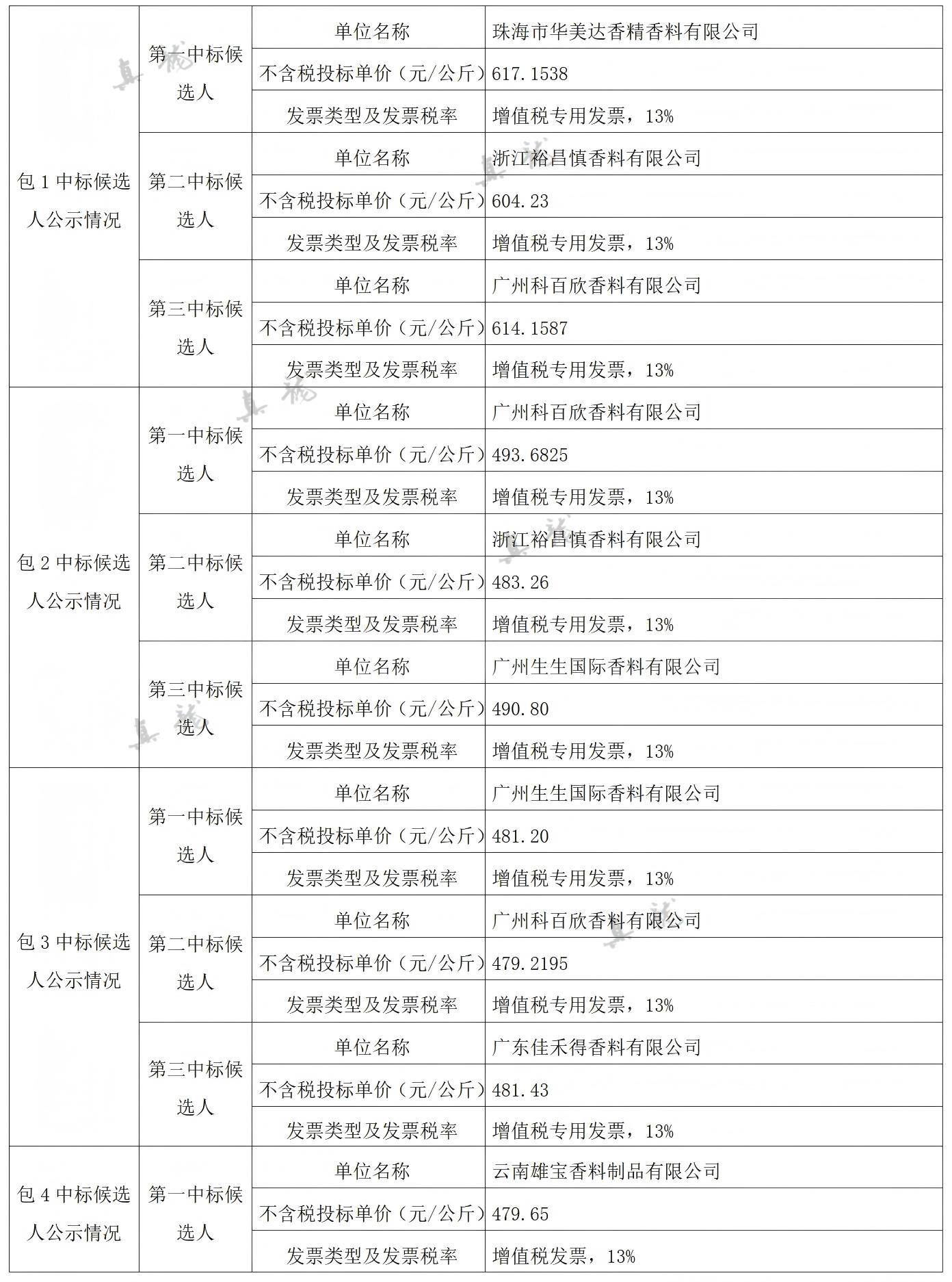 廣西中煙工業(yè)有限責任公司2026-2028年自主品牌香精香料采購之復(fù)合體采購第一批(項目編號:B202501BA2001767947560)中標候選人公示