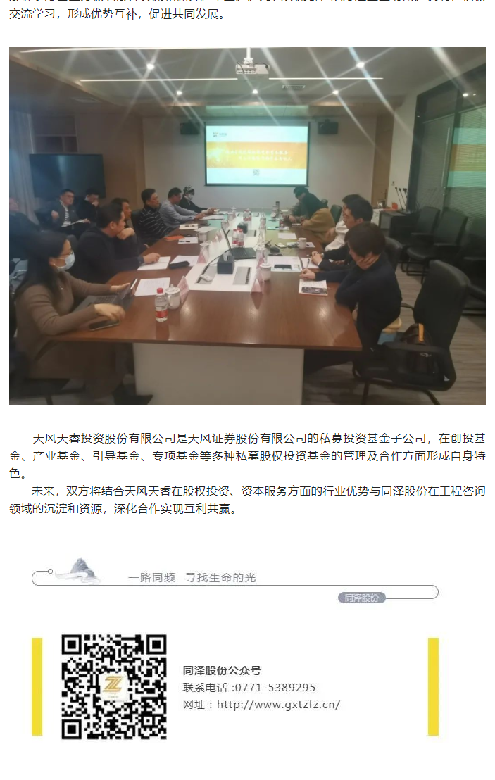 合作交流 | 天風(fēng)天睿投資股份有限公司到訪同澤股份座談交流